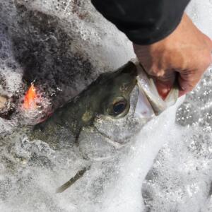 シンタロウが送ってくれました! 僕たちにとっては待ちどしいハイシーズンを予感させるランカースズキの写真!