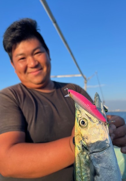「そら朝でしょタケダさん?」…「いやいやっ昼でも行けるって…!」っと漁師たくやと午後便ちょい沖サゴシ探し。「なっ、ほらつついてるやろカモメ!」…そして無反応。しばらくしてテイクバッカーを下ろしたてのたくやにサゴシ2匹!!その間にタケダさん5バイトもあるも歯形だけ(泣)…理由は明白、テイクバッカー下ろしたからです(笑)…それもまぁ真実ではありますが(笑)低活性なサゴシなので少し小さめのルアーが良かったかなと?フリッツ28g!..「小さい方がええんかな?」っと慌ててロリベ88に替えたけど掛からへん(笑)やはり青物は青物、たとえサゴシであろうがGo-Phishテイクバッカー10S&フリッツ、ヴァンテージ93GP、サワラー…であります。…台風明けたらまた行こう!…少しいいサワラに来て欲しいなぁ!…テイクバッカー10Sの季節です!