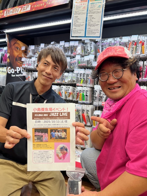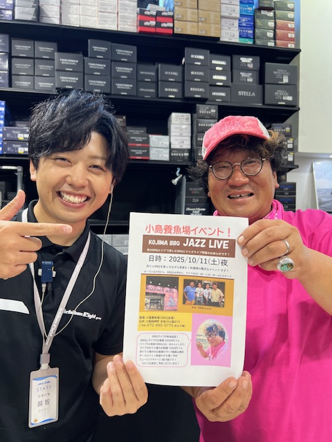 関西のフィッシングイチバン(池田)さん、フィッシングエイト アネックスさん、フィッシングエイト本店さんへ!「僕もご挨拶に!」っと小島養魚場の中島くん(えらい!)も一緒に訪問。さすが人気の中島くん、イチバンさんでは出会うスタッフ全員が笑顔でお出迎え(笑)アネックスさんも本店さんも「ピンクすぎて入ってきた瞬間わかりますやん(笑)」っと終始笑顔であります!
