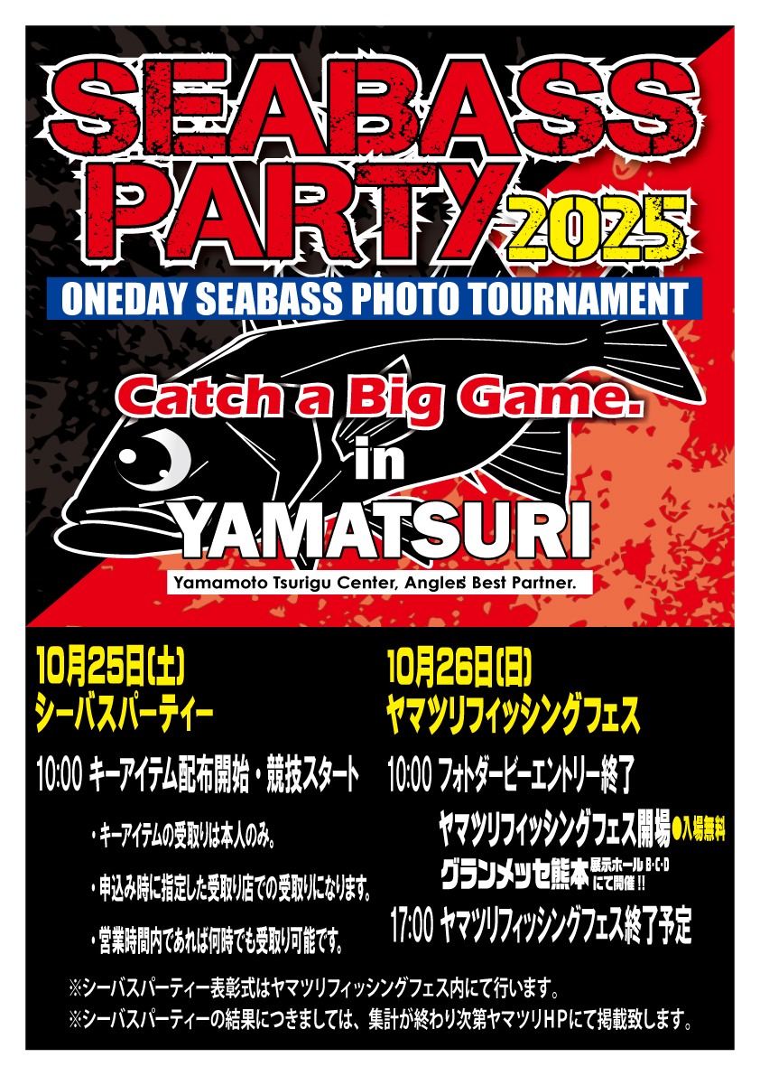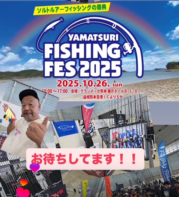 明日からは熊本!ついて早々スズキ釣り!釣れるんやろか?(笑)運にかけます!そして10/26(日)は「YAMATSURI FISHING FES 2025」。たくさんの皆さんのご来場をお待ちしております。どうぞタックルハウス/Go-Phishブースへ!!