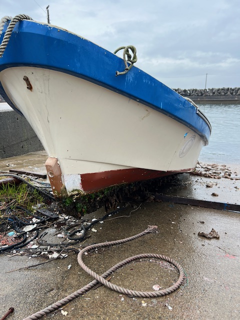 そして日曜日の朝「起きてるかー?」っとオケちゃんの電話。慌てて漁港へ…「船上げててくれてました!(泣)」ありがとう!…後は貝とって船底塗料でOKやね?…「手伝わんかい?」とは言わない優しいオケちゃんです(笑)