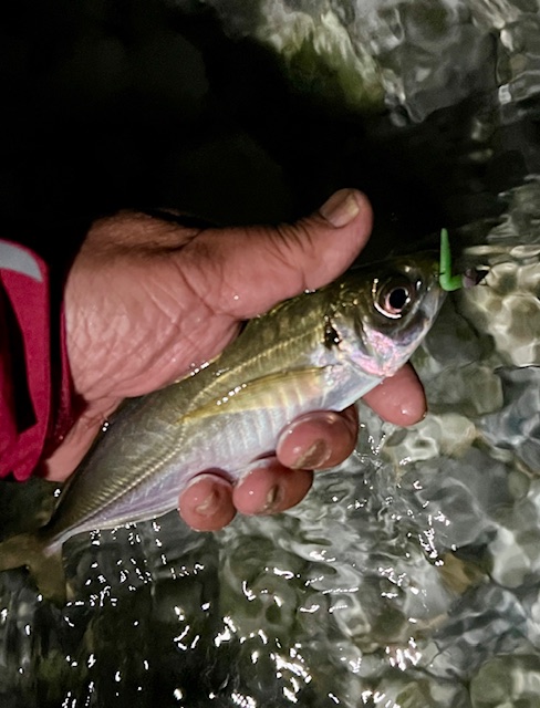 昨夜は中島くんと浸かる…。前日同様、無風ながら潮はビミョーでライズは無し!ひとまずピットスティック47LW GPでふわーっと沈めて巻いて…でアジにガシラに!「おんなじ雰囲気やなぁ?」っと今日は持ってきてます「まる山のみ太郎」!…そこからは怒涛のガシラ&たまーに「いいアジ!」(ゼイゴは怖いけど思わずハンドランディングしたりして(笑))中島くんも楽しそう!!…「肩凝るなぁ?」っと思ったら3時間も浸かってました(笑)無風日、癒しの2デイズでございました!…また行こう!!