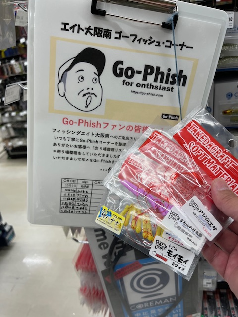 意を決して!…っとフィッシングエイト大阪南Go-Phishコーナーの整理いただきましたNさん!ありがとうございます。聞けば僕の在籍したいくつかのバンドも観て聴いてくれたこともあるという…嬉しいなぁ!何かしますので(笑) Nさん「中学生以来また釣りをと近所でライトゲームやシーバスを!」っとのこと。そんな皆さんにもGo-Phish&TAKEDACRAFTが気持ちよく釣りを楽しんでいただけるお手伝いをと思います。
