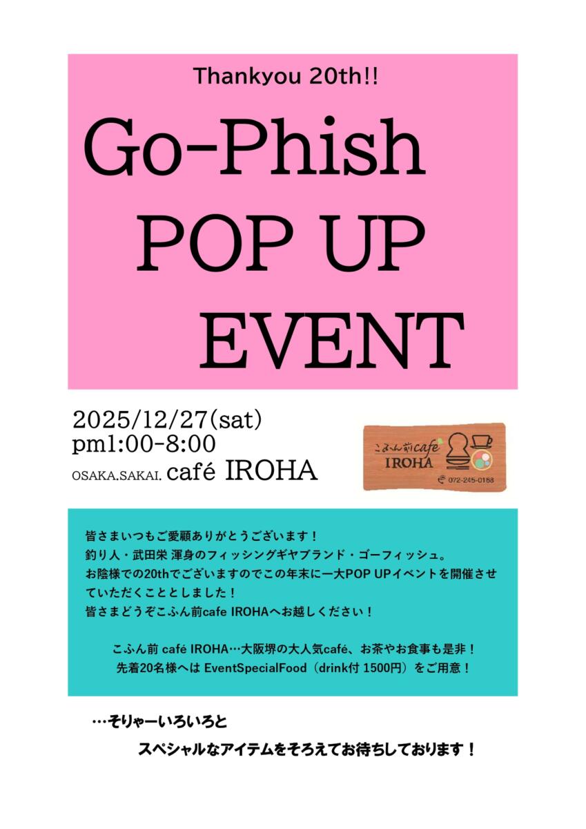 今年もあと2週間を切るという…。で今年Go-Phishの最終イベントは12/27(土)のcafe IROHAさんでのPOP UP EVENT!この超かわいいターコイズのイラストカッティングステッカーはこのイベント日の限定販売品!(イベントに来れないエリアの皆様へはもうし訳ありませんので、たいそう人気ならその後WEBでもとも思いますが…(笑))その他スペシャル企画で進行中!