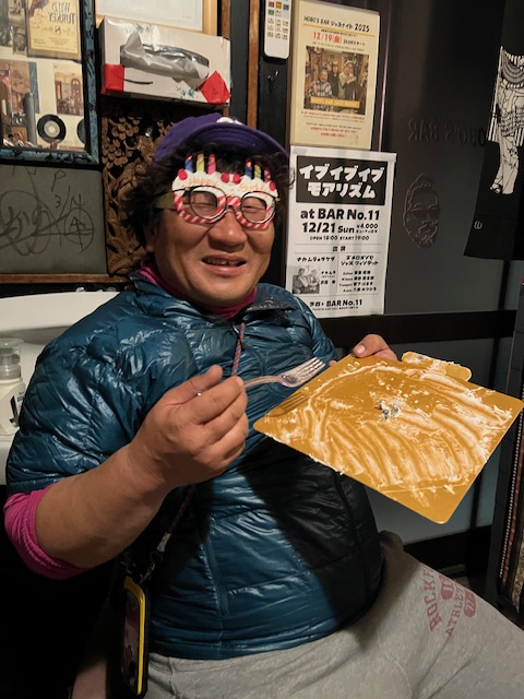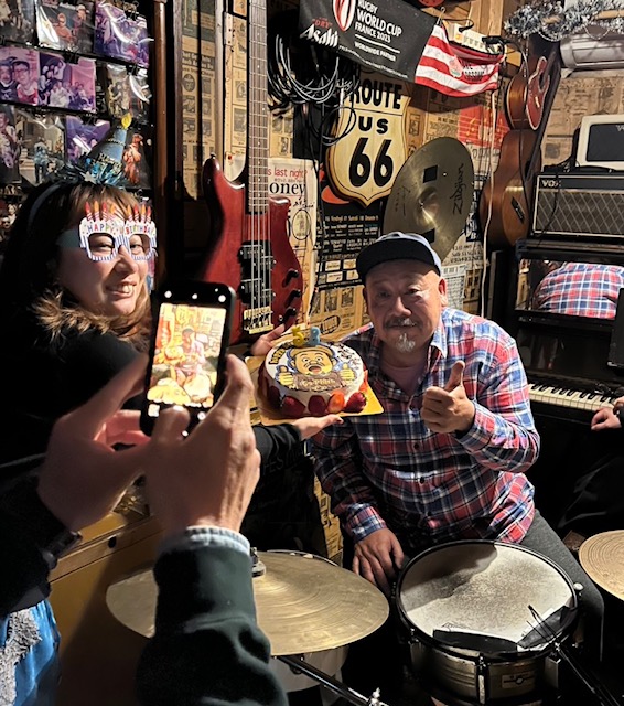 HOBO’SBAR JAZZ NIGHIT。トランペットのサニーくんにギターの安東くんも来てくれて気づけば40分も遅れてライブスタート!2ステージが終わって「皆さん来年もよろしくー!」っと話しかけるといきなりのバースデーソング???…まさかの「俺」でした(笑)こんな豪華なケーキ!!!!!もう完全な仲間と呼びたい皆さんです。ありがとう!!ホントにまさかまさかのバースデーサプライズだったので今なお感動。ウルっとかきてます。58歳!こんな嬉しい気持ちです。…今日もライブ。がんばります!