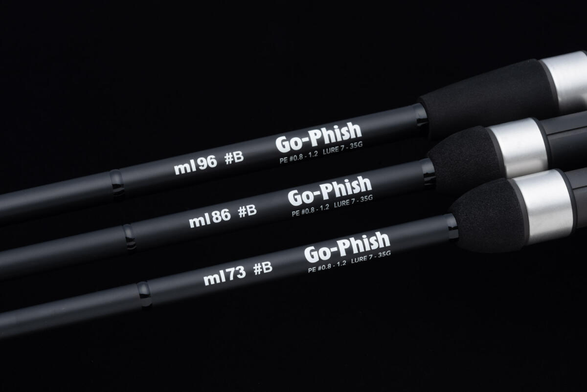 Go-Phish#B 3機種。ローリングベイトタチウオからベイエリア全般で使える3種のスペック。7.3ftはエギも扱えます。