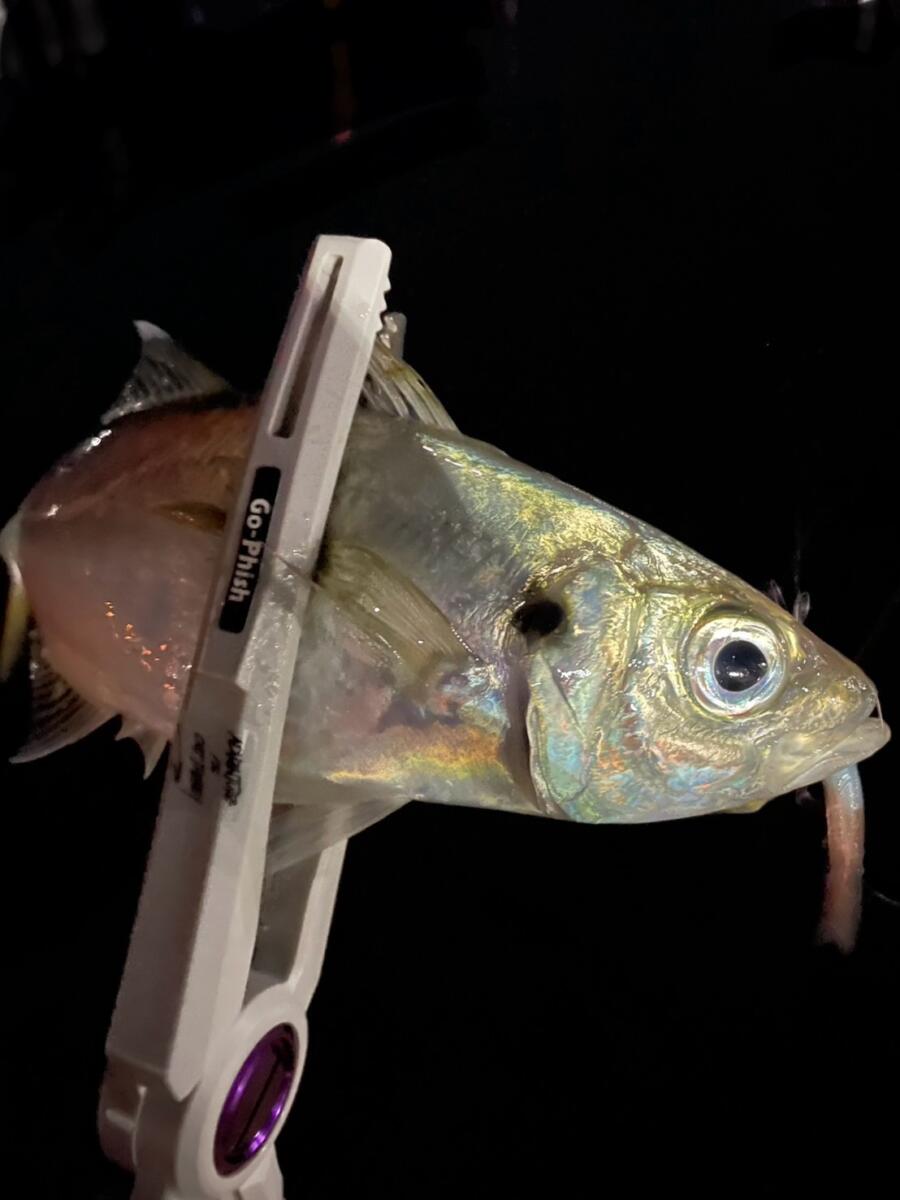 福岡peccadepotシンタロウは離島でデカアジ三昧とか?アジのエサ!そしてタケダさんは懲りずにご近所アジ。低潮位とわかっていながら行ってみましたがあえなくバイトのみ(泣)先行のノッポとアケちゃんはポツリポツリと釣果!時間帯なのか何なのか狙いすますと答えてくれないアジであります!…デカいアジには2.5インチ最強!そしてアジのエサ・長ーい6インチ、テストは続きます!