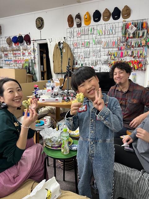 3/8(日)にイベントお行います愛知県一宮市のプロショップ「CALYPSO)カリプソ)」さん。昨日は店主大宮くんご一行が遊びに来てくれました!ありがとう!!「かどや」のランチを食べ、事務所ではおみやげの手作りケーキをいただいて喋っているとサプライズ!…ご近所の平野ファミリーから「採れたて!ふきのとうやサツマイモなどの天ぷら!」の差し入れ!!!嬉しいーっ!わざわざ揚げたてを持ってきてくれるなんで最高のご近所さんです(笑)