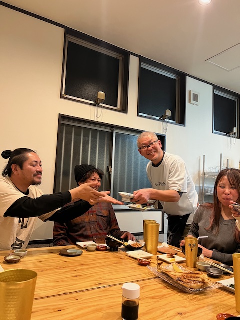 釣りの後は料理長の丸和華へ!美味しい晩ご飯で締めくくりました。ご一緒した名古屋のど真ん中でイタリアンのオーナシェフ・よしださんは、この満腹状態で名古屋まで帰るとの事!えらいっ!気をつけて…!