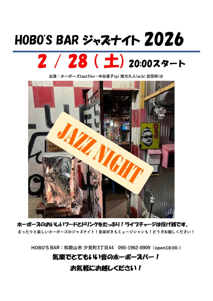あっという間に2月も終わりそう?…2/28(土曜日です!)は和歌山市HOBO’S BARのジャズナイト。楽しい夜になりそう!どうぞよろしくお願いいたします。