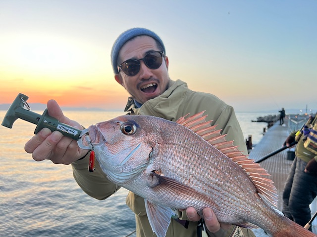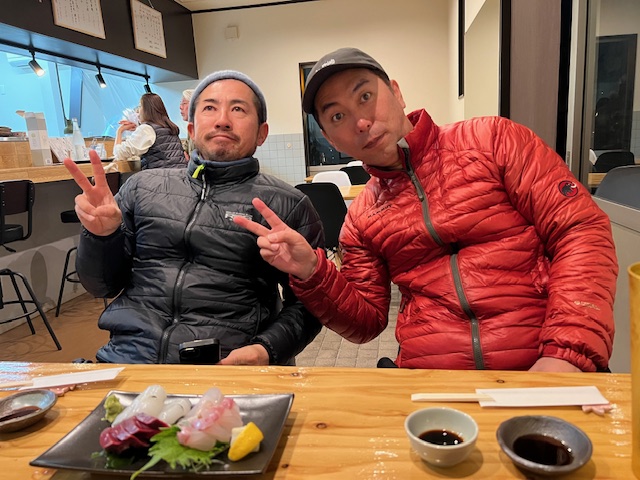 ノッポ、アケちゃんと小島養魚場の日曜日。名手来山さんも遊びに来たので一緒に夕暮れ前からの釣り。開始間もなく何気に外向きのアジでも?っとアケちゃん、まさかのボトムノックスイマーで底と探るとコンッ!っと…出ました天然マダイ!ヤバいな(笑)「やるねぇー!」っと喜んで日没に。名手来山さんもスズキ狙いでキャストを繰り返すもワンバイトのみ、残念!まだまだ低水温、アジも動きません。タケダさんはもちろんメバル。夜はノッポ、アケちゃんとで並んでメバル。なかなかシブいけどそこはタケダさん!いいメバルも数匹!午後8時半、春の雰囲気だった海は突如北風に変わり激寒!!!!!「あかん、もう頑張られへん!」っと早めに撤収し料理長の丸和華で遅めのディナー。まずまずの日曜日でございました!