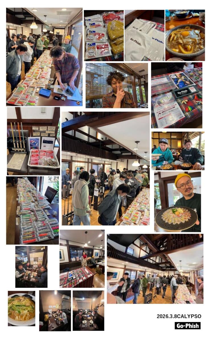 3/8(日)一宮市のCALYPSOイベント。とても楽しく終了いたしました!3度目ともあってタケダさんも顔なじみのお客様や愛知県の南からとか東からとか大阪から(友の会)とかと…少し遠方からのみなさんも!ありがとうございます。発売したてのロッドkamometrail48ulBKもご予約をいただいていましたお客様に加えたくさんの皆様にご購入いただきました!ありがとうございました!バス・トラウトそしてライトソルトと手軽に楽しめる釣りを主体に愛知や岐阜のお客様達と楽しまれてていますCALYPSOさん。釣りの幅やスタイルもさることながらやはりこの盛り上がりは店主大宮くんの何とも愛くるしい人柄なんでしょうねきっと?(笑)こんなにたくさんの人が集まるのに雰囲気の良い方しか集まりません(笑)THE釣具ショップ。これがいい!!今回ご一緒しましたタックルハウスさんもサムルアーズさんも終始笑顔で対応されてましたし!そして浜名湖のチーム・グッドバイブス、釣りの帰りなのにお手伝いに来てくれた府中屋さんの若手スタッフの皆さん、はまじまくん、ありがとうございました!お客様はもちろん、店主さんや問屋さん、友人知人に仲間達と実に多くの皆様に助けられてるGo-Phish/TAKEDACDARTであります。次回はフレンチもうなぎも味噌煮込みも手羽先も全部食べに行こうと思います!(笑)大宮くんありがとう!お疲れ様でした!…これぞイベント!
