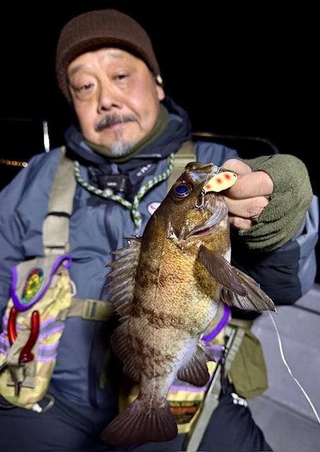 荒牧くんがキャプテンを務める西宮発の遊漁船・ベイサイドオッシャーへUOYAの小西くんとお邪魔してきました。「あータケダさーん!」っと荒牧!当初は19:00出船予定でしたが時合いは遅いとの事でまずは腹ごしらえ、遅めの出船でしたが予想外の爆風!!「釣りは無理やろこれ」的なポイントへ着くも何もできず徘徊。ほぼ深夜になってライズが始まり釣り開始。プルシャッドGPそして安定のモイモイで短時間の爆釣でした!ベイトはハク・イカ・アミ…と多様ながら時合い以外は無反応な3月中旬の大阪湾か?これからが楽しみです。