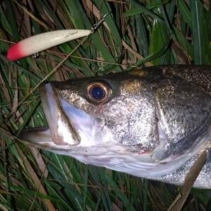 「来たーっ!」っとカマスを釣り上げるジュンヤくん、ルアーは噂のフェンリー!(昔からこーゆーのはいつもこっそり買うとんねん!(笑)