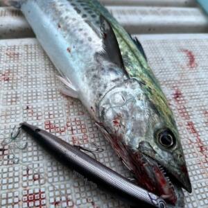 荒れ後の海は状況が読めませんでしたがシイラにシオにソーダにイトヒキアジ…っと満足! そして何より今回は昌栄さんの「パラソル立て」のおかげですこぶる快適!取材→演奏→沖磯と完徹のタケダさん爆睡(笑)